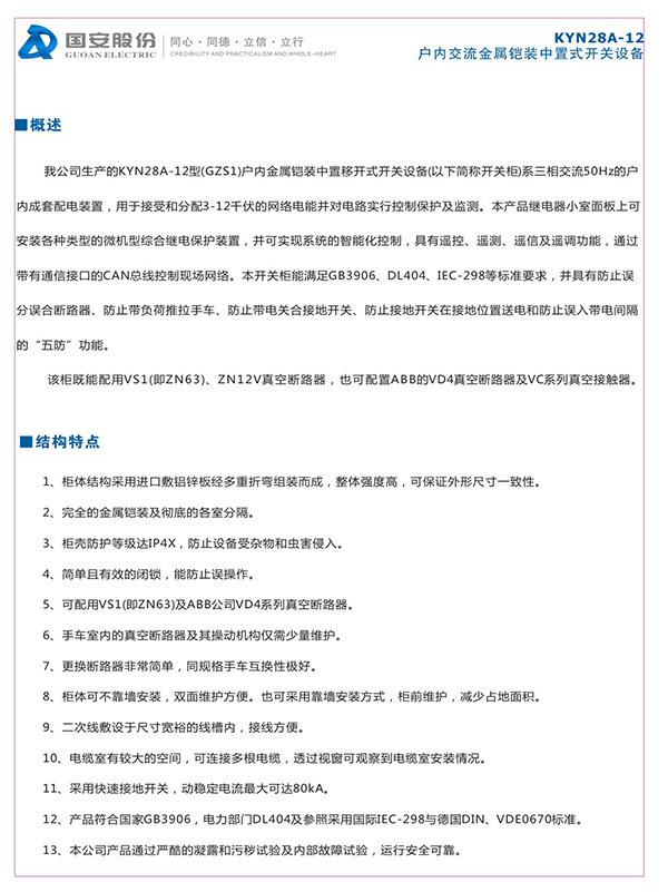 KYN28-12(Z)铠装移开式交流封闭开关柜